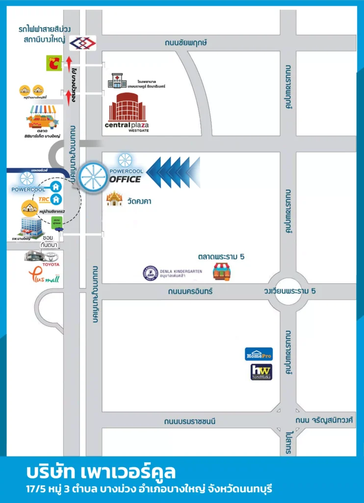 แผนที่OFFICE แผนที่OFFICE แผนที่โกดังสินค้า แผนที่โกดัง ที่อยู่OFFICE เพาเวอร์คูล (POWERCOOL) , 17/5 หมู่3 ตำบลบางม่วง อำเภอบางใหญ่ จังหวัดนนทบุรี 11140 ที่อยู่โกดัง เพาเวอร์คูล (POWERCOOL) , 43/4 หมู่ที่ 4 ซอยบางใหญ่บางคูลัด 13/1 ตำบล บางม่วง อำเภอบางใหญ่ จังหวัดนนทบุรี 11140 เวลาทำการ จันทร์-ศุกร์ : 08:00 – 17:00 เสาร์ : 09.00 – 17.00 อาทิตย์: หยุด เบอร์โทรศัพท์ 062-897-7775 | 094-571-1285 Line ID @eurokool